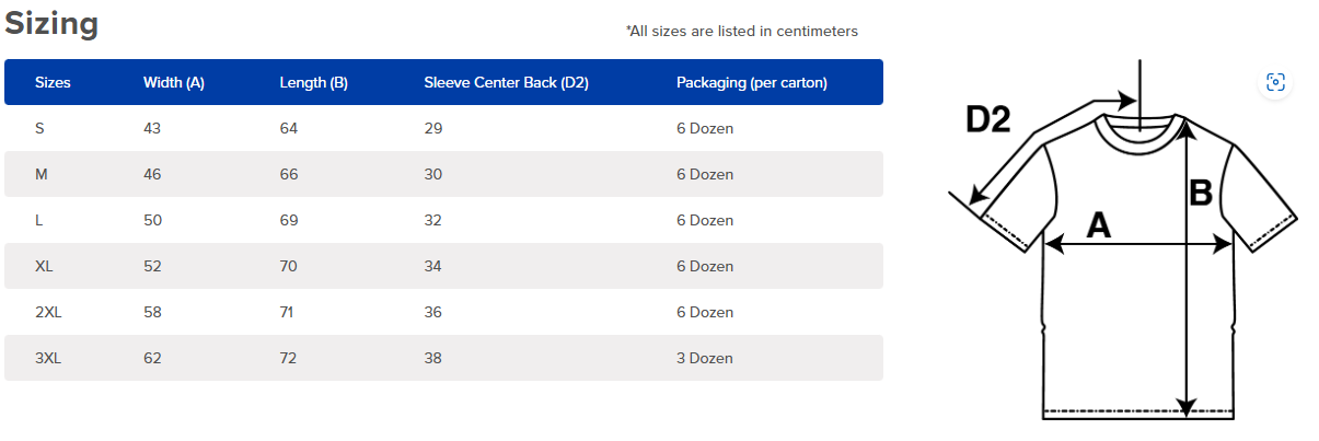 Sizes S - 2XL